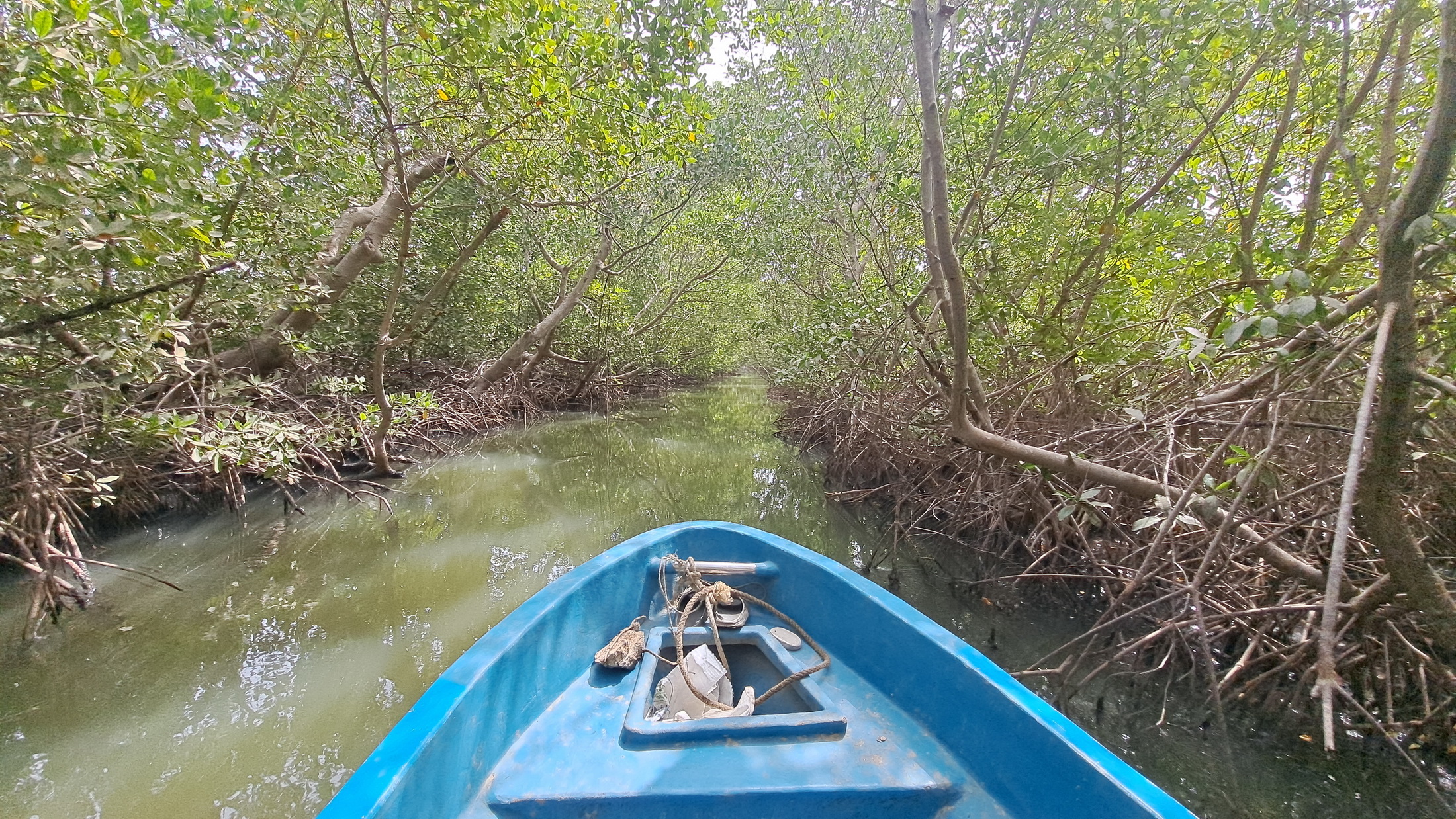 Ma Kafountine non è solo oceano. Alle spalle del villaggio si estende un intricato sistema di mangrovie e bolong, i canali d’acqua salmastra che penetrano nell’entroterra. Esplorare questi ambienti in piroga è una delle esperienze più affascinanti della Casamance: si scivola tra radici intrecciate, specchi d’acqua silenziosi e una vegetazione che sembra inghiottire ogni cosa. È un ecosistema fragile e vitale, fondamentale per la pesca e per la protezione delle coste.