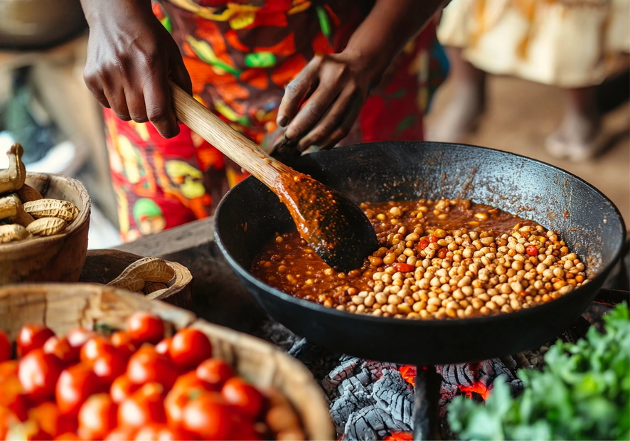 Domoda Considerato il piatto nazionale del Gambia, il domoda è uno stufato a base di burro di arachidi, che dona una consistenza cremosa e un sapore unico. Può essere preparato con carne (manzo, pollo o agnello) o pesce, e viene arricchito con verdure come patate dolci, carote e zucca. Viene servito su un letto di riso bianco.