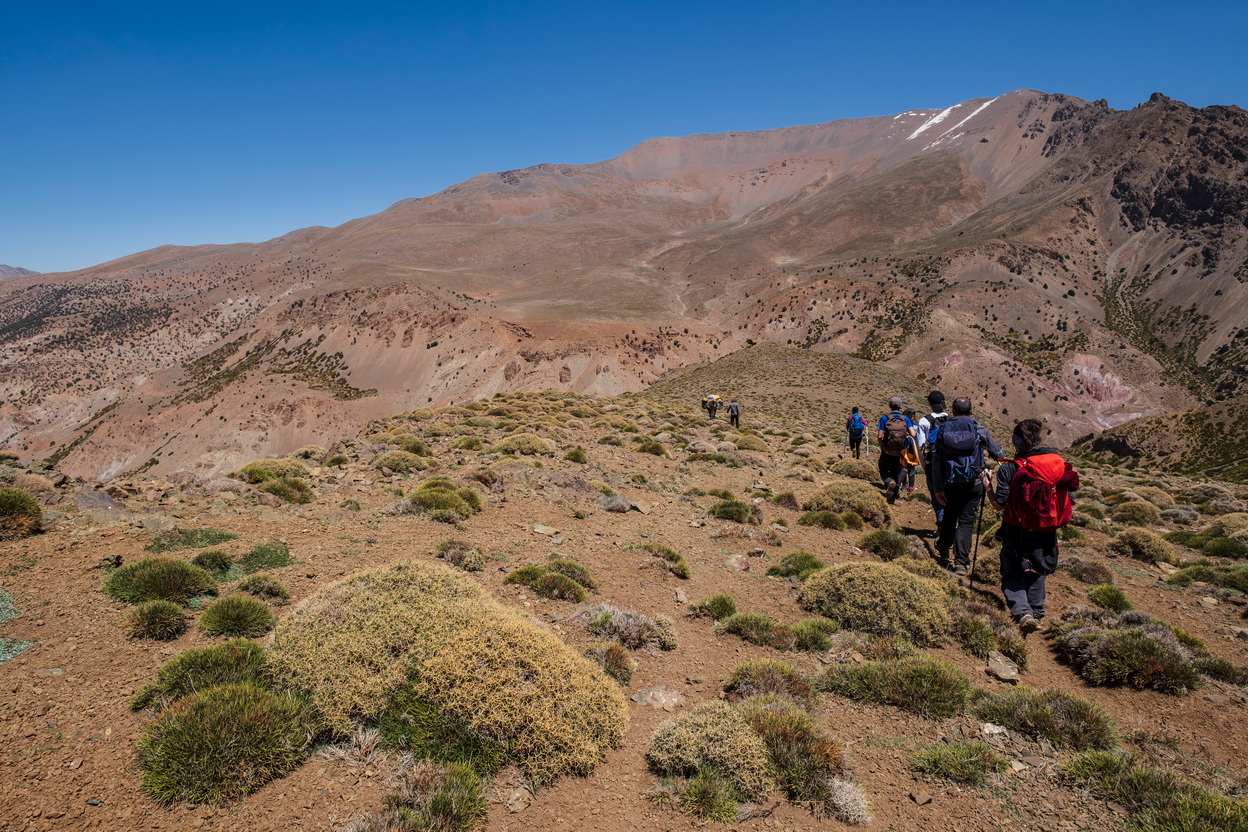 A sud dell’Alto Atlante, il Jbel Saghro è un massiccio arido e spettacolare, spesso trascurato dai turisti. È un paesaggio minerale, punteggiato di altopiani, gole profonde e torri di basalto. È anche terra di nomadi Aït Atta, che conducono greggi attraverso valli senza tempo. I trekking nel Saghro sono ideali da novembre a marzo, quando l’Alto Atlante è innevato (ma ovviamente bisogna essere attrezzati per neve e freddo). Tra le tappe più belle ci sono Bab n’Ali (due torri di pietra alte 60 metri), le valli di Tagdilt e i passi montani di Tizi n’Tazazert. Un viaggio in queste zone è un’immersione totale nel silenzio e nella bellezza.