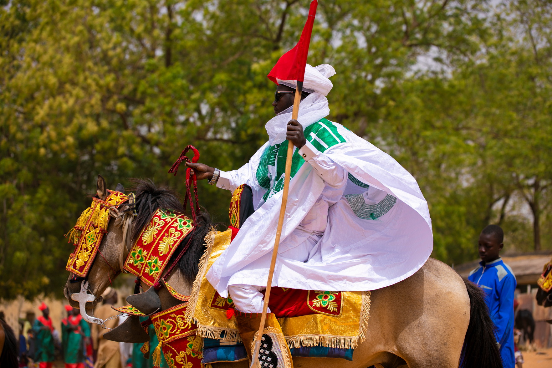 È un rituale antico, simbolo di onore e disciplina. Durante le feste, tra danze circolari e suoni di tamburi, si celebra la bellezza e la grazia dei pastori Fulani, noti per l’eleganza dei loro abiti e la ricercatezza delle acconciature.