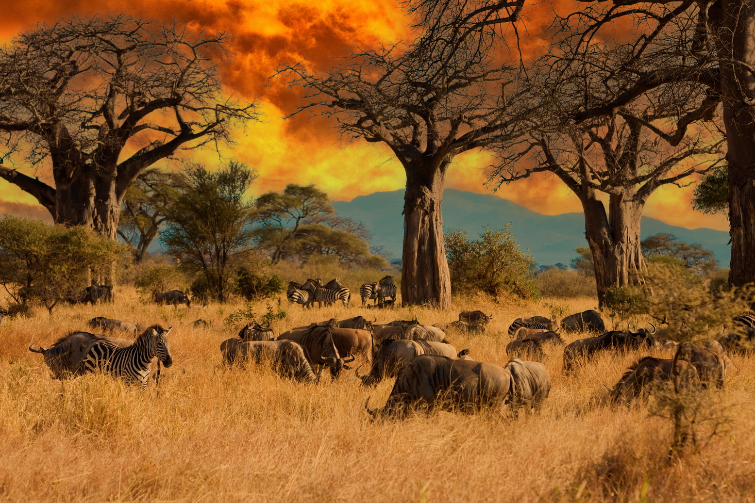 Ma Tarangire non è soltanto il regno degli elefanti. La biodiversità è straordinariamente ricca. Nelle pianure e nei boschi del parco vivono leoni, leopardi e iene, oltre a giraffe, zebre e grandi mandrie di gnu che si spostano stagionalmente tra le savane. Numerose specie di antilopi – tra cui impala, eland e kudu – completano il mosaico della fauna.
