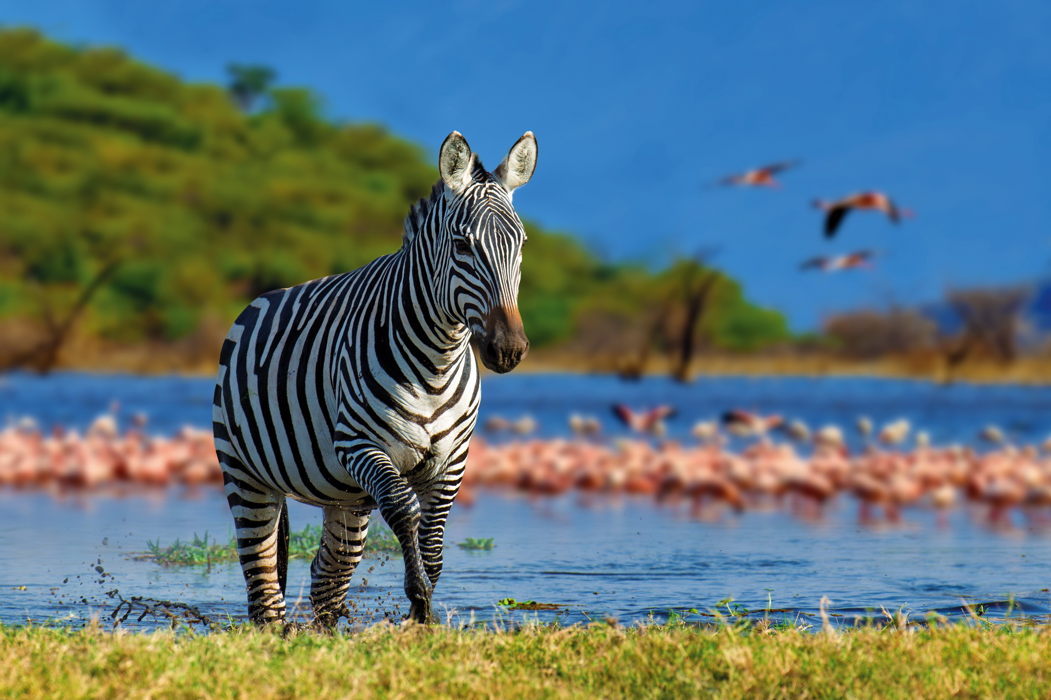 Proseguendo verso il lago, il paesaggio cambia rapidamente: la foresta lascia spazio a savane aperte punteggiate di acacie, a zone paludose ricche di vegetazione e infine alle grandi pianure salmastre che circondano il lago. Questo mosaico di ecosistemi rende il parco un habitat ideale per una straordinaria varietà di fauna.