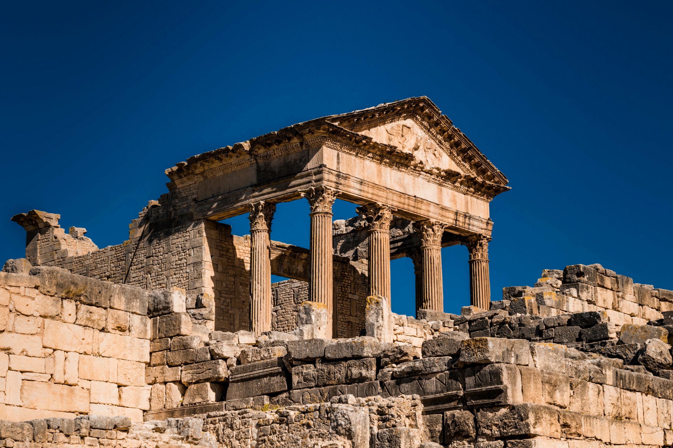 Immersa in un paesaggio di colline e uliveti, Dougga è forse il sito archeologico romano meglio conservato di tutta l’Africa del Nord. Fondata dai Numidi e poi integrata nell’Impero Romano, la città visse il suo massimo splendore tra il II e il III secolo d.C.