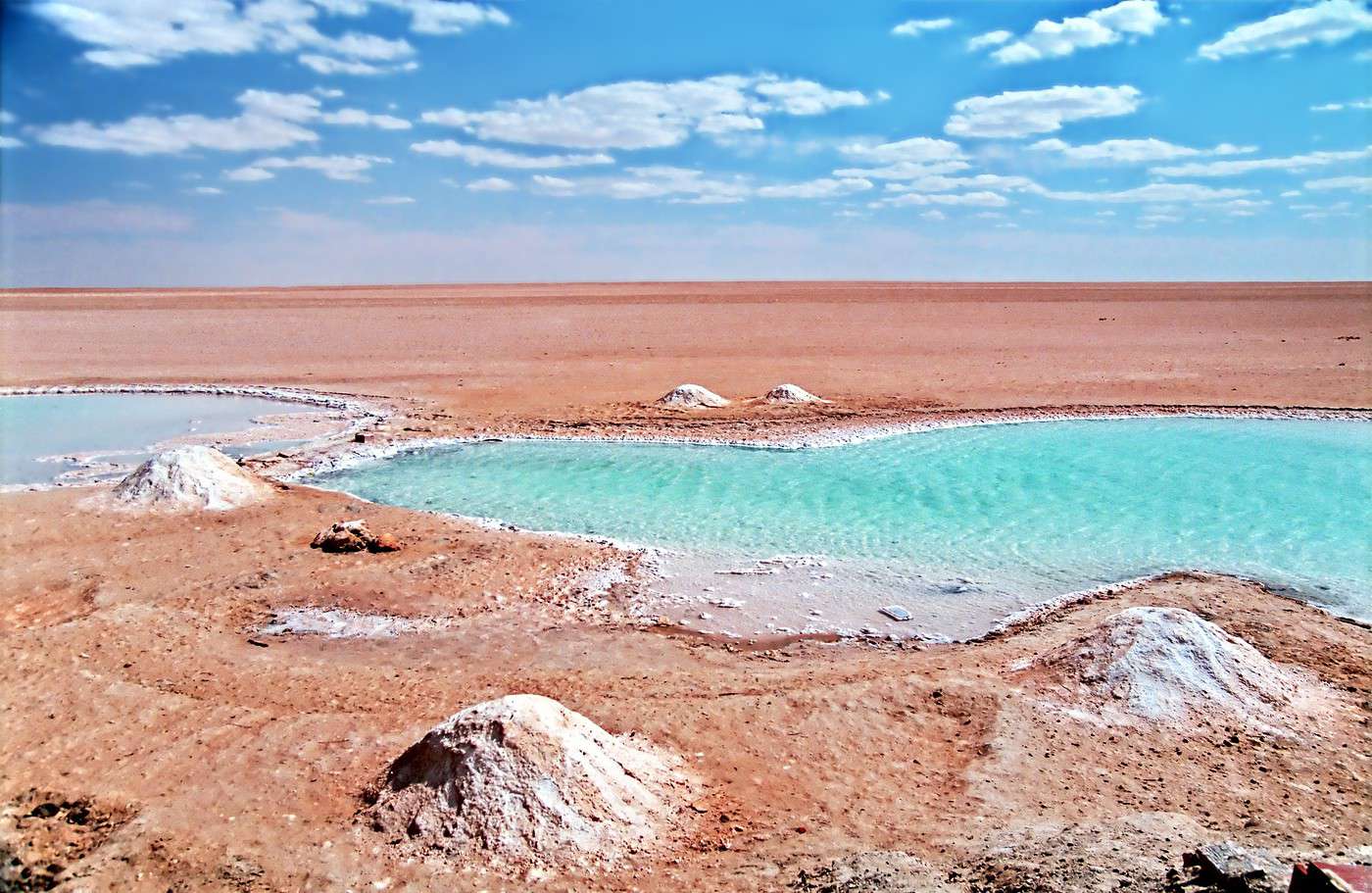 Tra Tozeur e Douz si stende il Chott el Jerid, una distesa salata di oltre 5.000 km², la più vasta dell’Africa. È un luogo quasi irreale: d’inverno l’acqua ricopre parte della superficie, d’estate il sole la prosciuga lasciando cristalli di sale dalle tonalità che variano dal bianco al rosa.